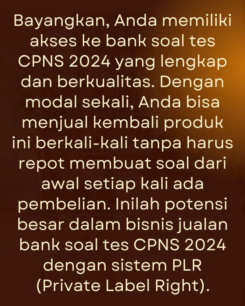 Hanya dengan Rp.100.000, - Anda sudah bisa memulai bisnis penjualan bank soal tes CPNS 2024 yang potensial ini.